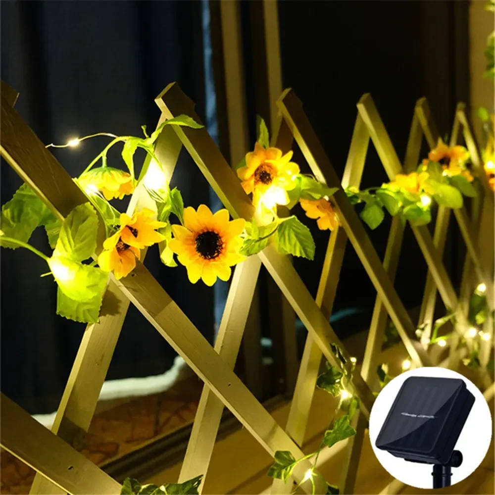 2/5/10M Solar Sunflower Light String Outdoor Fairy Lamp 8 Mode Artificial